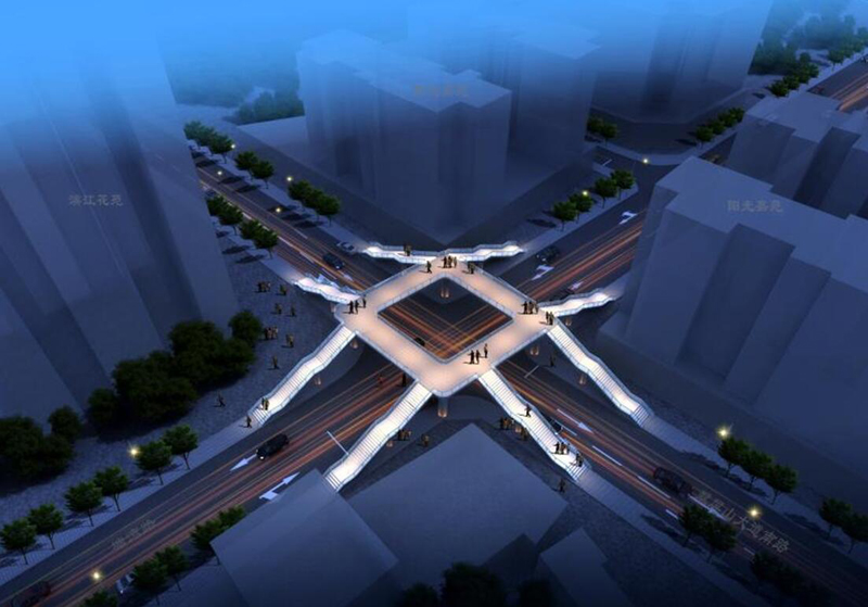 酉陽縣過街人行天橋(一期)項(xiàng)目:(1)鐘多小學(xué)人行天橋采用“菱”形平面布置,天橋主梁寬度4.2m,凈寬4.0m;梯道寬2.5m,凈寬2.3m;在梯道兩級(jí)休息平臺(tái)均設(shè)置梯道墩,梯道下設(shè)置管理用房;(2)民族小學(xué)人行天橋:天橋采用“H”形平面布置,天橋主梁寬度4.2m,凈寬4.0m;梯道寬2.6m,凈寬2.4m;在梯道兩級(jí)休息平臺(tái)均設(shè)置梯道墩,梯道下設(shè)置管理用房;(3)酉州小學(xué)人行天橋:天橋采用“工字型”天橋全長13.1m,橋面橫向全寬3.2m,凈寬3.0m;梯道寬2.0m,凈寬1.8m,每18級(jí)臺(tái)階設(shè)置休息平臺(tái)。本工程于2018年10月19日開工建設(shè),2019年10月16日完成全部工程建設(shè)。